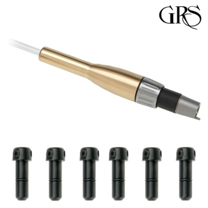 The GRS Maestro Original handpiece is particularly suitable for scrimshaw and stippling. It is ergonomic and slim, well balanced and has a quiet operation. Because it has a similar internal design to the Monarch, it can also be used very well for fine engraving in metal where low to medium force is required. Heat-treated steel and solid brass.
