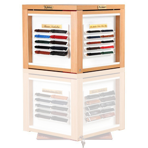 The basic and top elements are equipped with large plastic glass panes on three sides for optimum presentation of your straps - also on the counter. Additional drawers in the base unit serve as storage.