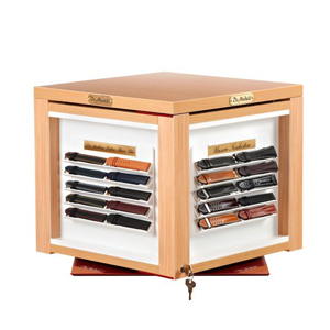 The basic and top elements are equipped with large plastic glass panes on three sides for optimum presentation of your straps - also on the counter. Additional drawers in the base unit serve as storage.