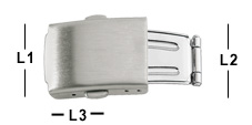 2 buttons, large coverFolding clasps with 2 pushbuttons and long plate. Subgroups nameL1L2L3widthmaterialitem No.folding clasp11,0 mm12,2 mm7,1 mm12.0 mmyellow444861folding clasp12,1 mm14,3 mm8,2 mm14.0 mmyellow444862folding clasp15,7 mm16,2 mm9,2 mm16.0 mmyellow444863folding clasp16,6 mm18,2 mm9,1 mm18.0 mmyellow444864folding clasp18,9 mm20,2 mm10,2 mm20.0 mmyellow444865 nameL1L2L3widthmaterialitem No.folding clasp11,0 mm12,2 mm7,1 mm12.0 mmSteel444961folding clasp12,1 mm14,3 mm8,2 mm14.0 mmSteel444962folding clasp15,7 mm16,2 mm9,2 mm16.0 mmSteel444963folding clasp16,6 mm18,2 mm9,1 mm18.0 mmSteel444964folding clasp18,9 mm20,2 mm10,2 mm20.0 mmSteel444965
