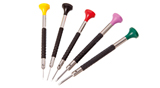 Bergeon Elastomer Subgroups Promo - Set nameVersiontypemanufacturecontentsitem No.screwdriverAssortmentplastic etuiBergeon5 pieces510863 selection on revolving base nameVersiontypemanufacturecontentsitem No.screwdriverAssortmentrotating baseBergeon9 pieces510856screwdriverAssortmentrotating baseBergeon10 pieces510857 selection in case nameVersiontypemanufacturecontentsitem No.screwdriverAssortmentEtuiBergeon10 pieces510858 screwdrivers singly nameblade widthcolourmanufacturePUitem No.screwdriver0.50 mmorangeBergeon1 piece510824screwdriver0.60 mmwhiteBergeon1 piece510825screwdriver0.80 mmyellowBergeon1 piece510826screwdriver1.00 mmblackBergeon1 piece510827screwdriver1.20 mmredBergeon1 piece510828screwdriver1.40 mmGreyBergeon1 piece510829screwdriver1.60 mmVioletBergeon1 piece510830screwdriver2.00 mmGreenBergeon1 piece510831screwdriver2.50 mmBlueBergeon1 piece510832screwdriver3.00 mmBrownBergeon1 piece510833 replacement blades nameblade widthshapematerialPUitem No.replacement blades0.50mmV-Formstainless steel3 pieces511080replacement blades0.60mmV-Formstainless steel3 pieces511081replacement blades0.80mmV-Formstainless steel3 pieces511082replacement blades1.00 mmV-Formstainless steel3 pieces511083replacement blades1.20 mmV-Formstainless steel3 pieces511084replacement blades1.40 mmV-Formstainless steel3 pieces511085replacement blades1.60 mmV-Formstainless steel3 pieces511086replacement blades2.00 mmV-Formstainless steel3 pieces511088replacement blades2.50 mmV-Formstainless steel3 pieces511089replacement blades3.00 mmV-Formstainless steel3 pieces511090replacement blades assortment0.80-1.20V-Formstainless steel30 Pieces511099 fixing screws nameVersionthread ØmaterialPUitem No.fixing screwscylinder screwsM2x1.5stainless steel10 pieces510975
