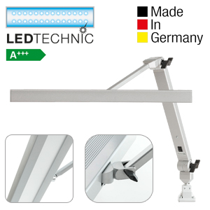 Powerful full-spectrum LED work light class for optimal illumination of your workplace. Cutting edge technology with high-performance LEDs. Low power consumption, as well as continuously dimmable with memory function. The ultra-thin light head can be adjusted quickly by the ergonomic 3D joint in all variants according to your needs. Glare-free thanks to conical prismatic screen (or optionally a white opal screen) without shadows.