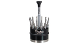 countersinksTool helpful in machining, deburring and countersinking. Subgroups cutter and deburrer nameVersionadditioncontentsitem No.cutter assortmentDeburring tool / milling tool / rounding toolon base12 pieces513900tool holderwith rotary knobToolSwitch1 piece513905insertConical cutter3.00 mm1 piece513910insertConical cutter4.50 mm1 piece513911insertBevelling cutter/deburrer1.00 mm1 piece513915insertBevelling cutter/deburrer2.00 mm1 piece513916insertBevelling cutter/deburrer3.00 mm1 piece513917insertBevelling cutter/deburrer4.00 mm1 piece513918insertCutter/trimmer0.90 mm1 piece513920insertCutter/trimmer1.30 mm1 piece513921insertCutter/trimmer2.50 mm1 piece513922insertCutter/trimmer4.00 mm1 piece513923insertCutter/deburrer0.65 / 3.00 mm1 piece513925insertCutter/deburrer0.90 / 4.00 mm1 piece513926 Countersinks nameVersiontypemanufacturecontentsitem No.CountersinksAssortmentrotating baseBoley12 pieces514775 Kreuzsenkfräser of hard metal. nameVersionmanufacturecontentsitem No.countersinksAssortmentBergeon15 pieces514780 wheel setter nameVersionmanufacturecontentsitem No.wheel countersinksAssortmentBergeon6 pieces514776 bur for hour-wheel tubes nameVersionmax. feedlengthmanufactureitem No.bursfor hour-wheel tube1.5 mm100 mmBergeon514748bursfor hour-wheel tube2.0 mm100 mmBergeon514749bursfor hour-wheel tube3,0 mm100 mmBergeon514750 bur for minute wheel pin nameVersionlengthmanufactureitem No.bursfor minute-wheel pin100 mmBergeon514752 bur for deburring nameVersionlengthmanufactureitem No.bursfor deburring100 mmBergeon514754 pivot polisher nameVersiontypemanufactureitem No.pivot polisherrod shapewith jewel; jewelledBergeon511700