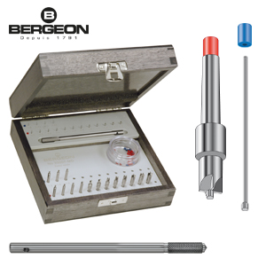 Assortment of 15 high-quality hard metal countersinks with replaceable pivots, a broach with conical chuck and locking sleeves.