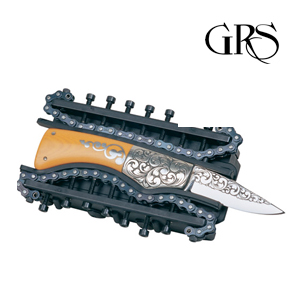 Designed and built by an engraver and knifemaker. In just seconds, you can now hold knives securely for engraving and other detail work with this wonderful vise. Special chain-like linear jaws conform to unusual and compound shapes with ease. Lined with a special hard rubber ribbon, these jaws grip securely without high clamping force. The Knifemaker's Contour Vise is totally adjustable for a wide range of widths and depths of knives. It mounts in any vise including all known engraving blocks. If you ever work on knives, get one...it's a well-made bargain.
