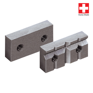Jaws made of metal suitable for the precision vice. One side smooth, other side with incisions.