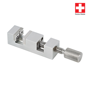 Mini precision vice with removable, hardened jaws, made in chromium-plated brass, with grooves to keep it parallel for another gripping device.