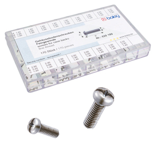 Assortment of 170 case back screws, each 20 pcs. with polished head.