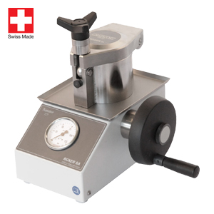 The Natator 125 consists of a stainless steel container into which the test watch is applied. Once the container is completely filled with water, the lid is locked. Using the side-mounted handwheel a pressure of up to 125 bar is easily built up.