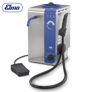 The Elmasteam 8 basic is perfect for all pre-cleaning and final cleaning applications in the watch and jewellery business and in the general workshop. The stainless-steel surface of the casing is easy to clean.The pressure tank can be filled by hand through the filling duct on the unit top, or automatically by means of a pump from the tap or from a canister. The unit indicates the optimum filling level and gives a visual warning when the pressure tank has run empty.