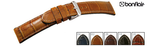 Calfskin watchstrap matt with Lousiana croco grain, contrast stitching and strong padding, ideal for chronographs.