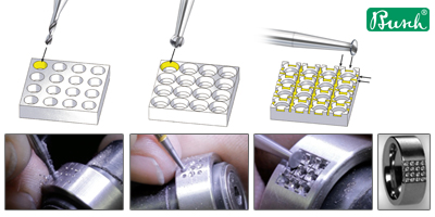 Pavé settingsSpecial tools for drilling pavé settings into very heavy splittable jewel metals, e.g. platinum, titanium, stainless steel but also gold, silver and their alloys. Subgroups step 1 Hard metal spiral drillsThis hard metal spiral drill with his short working piece is a very useful tool for an accurate and steady drill in a small space as it is necessary for pavé settings.Rec. speed: 3.000 - 5.000 r.p.m. nameVersionfigureHead-Øitem No.twist drillshort4205S0.70 mm568567twist drillshort4205S0.80 mm568568twist drillshort4205S0.90 mm568569twist drillshort4205S1.00 mm568570 step 2 Hard metal round cutterThe predilled hole will be enlarged by this hard metal round cutter. Thus a safe support can be cut for the rondiste in order to set the gem stone. The cutting of heavy accessible edges or fine corrections can be done with the smaller sizes of the round cutter, from 0,4mm on. nameVersionfigureHead-Øitem No.spherical burcoarse cutting1AU / HM0.30 mm563303spherical burcoarse cutting1AU / HM0.40 mm563304spherical burcoarse cutting1AU / HM0.50 mm563305spherical burcoarse cutting1AU / HM0.60 mm563306spherical burcoarse cutting1AU / HM0.70 mm563307spherical burcoarse cutting1AU / HM0.80 mm563308spherical burcoarse cutting1AU / HM0.90 mm563309spherical burcoarse cutting1AU / HM1.00 mm563310spherical burcoarse cutting1AU / HM1.10 mm563311spherical burcoarse cutting1AU / HM1.20 mm563312spherical burcoarse cutting1AU / HM1.30 mm563313spherical burcoarse cutting1AU / HM1.40 mm563314spherical burcoarse cutting1AU / HM1.50 mm563315spherical burcoarse cutting1AU / HM1.60 mm563316spherical burcoarse cutting1AU / HM1.70 mm563317spherical burcoarse cutting1AU / HM1.80 mm563318spherical burcoarse cutting1AU / HM1.90 mm563319spherical burcoarse cutting1AU / HM2.00 mm563320spherical burcoarse cutting1AU / HM2.10 mm563321spherical burcoarse cutting1AU / HM2.20 mm563322spherical burcoarse cutting1AU / HM2.30 mm563323Spherical burrcoarse cutting1AU / HM2.50 mm563325spherical burcoarse cutting1AU / HM2.70 mm563327spherical burcoarse cutting1AU / HM2.90 mm563329spherical burcoarse cutting1AU / HM3.00 mm563330spherical burcoarse cutting1AU / HM3.10 mm563331 step 3 Hard metal circular sawsAfter preparation of the correct gem stone position of the pavé setting the gaps can be cut crosswise by these new circular saws. It will rest only the claws for finally setting gem stones. The special gearing of the circular saws inables you to master nice and deep mill-cut into platinum, titanium, stainless steel as well as into gold, silver and their alloys. nameVersionfigurediscs Øthicknessitem No.circular sawmountedFig. 231F2,30mm0.20 mm561030circular sawmountedFig. 231FL2,30mm0,30mm561031circular sawmountedFig. 231FXL2,30mm0.40mm561032 starter kit Basic assortment for pavé settings, step 1 to 3Composition:4x hartmetal spiral drills (0,70 - 0,80 - 0,90 - 1,00mm)6x hard metal round cutters (1,00 - 1,20 - 1,40 - 1,60 - 180 - 2,30mm)2x hard metal circular saws (231F - 231FL) nameVersioncompositioncontentsitem No.basic assortmentPavé-settingsStep 1 to 312 parts568560