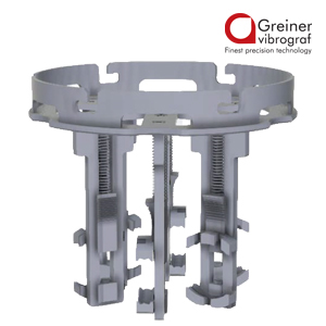 Vibration movement holder for 6 large movements, e.g. pocket watch movements. This movement holder was developed especially for large movements that do not fit into the standard vibrating movement holder. Due to the vertical mounting, they can be fixed without any problems. Including basket holder with shaft for mounting on the insert holder no. 693701. Vibration holder suitable for cleaning machine Vibrograf ACS921.