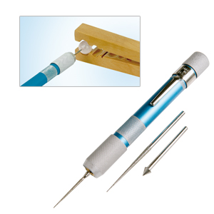 Ergonomic handle with three diamond cutting broaches in different shapes. For cutting pearls.