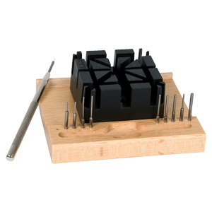 The tool to drive out watch strap pins has a synthetic support to hold watches with leather or metal straps in the desired position.