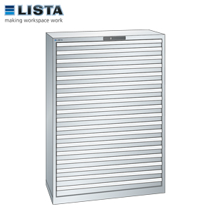 Thanks to the stable construction from high-quality sheet steel with different drawer heights, the housing can bear a total load of up to 4000 kg. All Lista products can be installed flexibly, on their own next to a workstation or combined with a workbench, stacked or as a mobile cabinet on castors.
