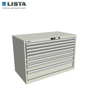 Thanks to the stable construction from high-quality sheet steel with different drawer heights, the housing can bear a total load of up to 4000 kg. All Lista products can be installed flexibly, on their own next to a workstation or combined with a workbench, stacked or as a mobile cabinet on castors.
