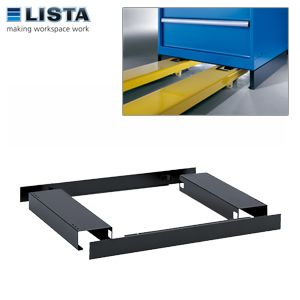 Made from sheet steel for height balancing. The bases are used to enable fully laden cabinets to be transported by pallet truck or forklift. The bases and housing floor are screwed together. Black, NCS S 9000-N.