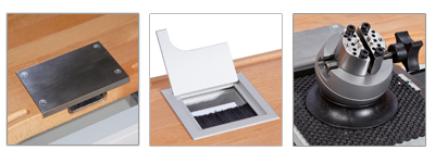 optional equipmentMatching special equipment for your goldsmiths workbench. Subgroups BenchMate nameVersionsystemitem No.fixing setComplete setBenchMate509470bench pinready-setBenchMate509476bench pinsingleBenchMate509477pre-assemblyworktop protector602434 worktop protector nameVersiondimensionsitem No.worktop protectorstandard150x100 mm502800worktop protectorBig-Size200 x 150 mm502801bench pinStandard/Big-Size502802pre-assemblyworktop protector602434 Bench skins namecolourWorkbenchesVersionadditionitem No.bench skinGreyClassiccow leatherstitched502804bench skinblackClassiccow leatherstitched502805bench skinGreyFlexbocow leatherstitched502806bench skinblackFlexbocow leatherstitched502807 Armrests with 3D ball joint nameVersionmanufactureitem No.Armrestswith 3D ball jointFlexbo602429 Upstand nameVersionadditionitem No.backsplashfor worktopHight 20mm602402 Extra strong worktop nameVersionmanufactureitem No.worktop50mm thicknessFlexbo602401 Drill holes in plate edge nameVersionmanufactureitem No.drillsin plate edgeFlexbo602403 Suction device nameVersionmanufactureitem No.suction deviceextendableFlexbo602412 Filling drawer nameVersionmanufactureitem No.filling drawerblack laid outFlexbo602410 Pliers stand nameVersionmanufactureitem No.pliers standextendableFlexbo602419pliers standwire formFlexbo602418 Increase of load capacity nameVersionadditionitem No.increase of load capacityincrease of load capacityfrom 80 kg to 100 kg602422 central locking nameVersionadditionitem No.central lockingf. stack of drawerslockable602428 Cable conduit cover nameVersionadditionitem No.coverfor cable ductwith hinge602425 Cable aperture bar nameVersionPUitem No.cable exitwith brushes1 piece602548 Flexbo Connect nameVersionPUitem No.cable exitwith brushes1 piece602541power socketincl. rotating lid1 piece602542Power socket + USB-Cincl. rotating lid1 piece602546Connect Basic2x cable passagescomplete set602550Connect Basic Pluspassage + built-in socketcomplete set602551Connect Comfort2x passages + built-in socketcomplete set602552 Flexbo Design nameVersionPUitem No.Power socket + USB-Cincl. flip-top lid2 pieces602547 division draver nameVersionadditionitem No.division draverSolid beech6 compartments602420 arm rests nameVersionmanufactureadditionitem No.arm restsErgonomicBergeonNon-slip602097 foot rest nameVersionadditionitem No.foot restinfinitely variableadjustable602455 protecting cloth nameVersionadditionitem No.protecting cloth for benchesanti-statictop quality602462 Linseed oil varnish nameVersioncontentsitem No.Linseed oil varnishcolourless1000 ml602065 Wax stick nameVersionadditionitem No.Wax stickBeechRepair - Soft wax602066