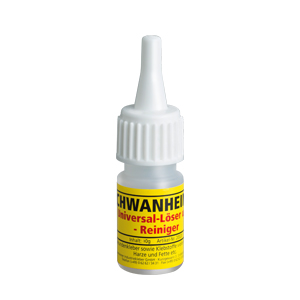 Universal solvent for rapid removal, as well as adhesives, e.g. the Universal 100. This allows incorrectly adhered areas to be quickly corrected, as well as cleaning the glued fingers.