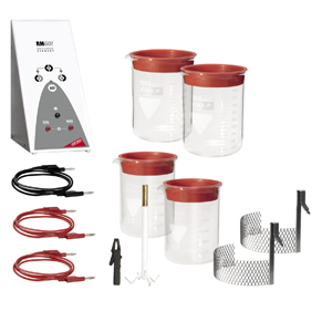 With the Rhodium Machine RMGo! Set 1 - for rhodium plating jewelry can easily be degreased electrolytically and rhodium plated. Pre-set processing times and voltages, together with an automatic energy cut-off, allow a professional end result. The time intervals can be selected between 15, 30 or 60 seconds.