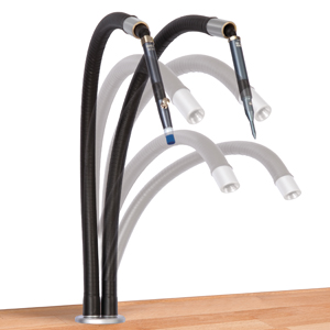 Complete system for pressure and vacuum on the workbench. Practical bent double tube for assembly on the workbench. Due to the angled by 45 ° handpieces a natural hand movement is given in gripping the hand pieces.