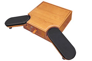 Compact watchmaker bench with armrests and lockable drawer, ideal for boutiques, training courses, seminars or at trade fairs, as well as wherever space is limited.