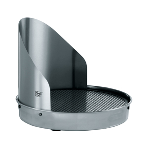 Practical dirt collecting tray made of stainless steel for keeping the workplace. Detachable grid plate for easy cleaning, geometric shape without dirt niches.