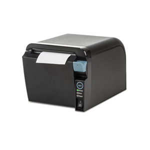 Compact thermal printer with easy paper-load and auto cutter. The thermal printer is extremely quiet and prints up to 200 mm/sec.