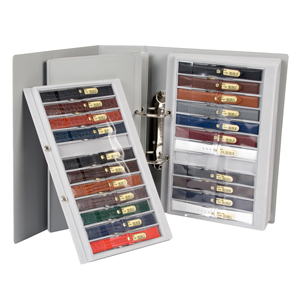Presentation folders for leather and steel straps.