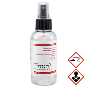 Firescoff is a revolutionary heat activated ceramic spray coating. Firescoff combines a scale preventer, a high performance non-fluorinated flux (for both hard and soft solder) and the convenience of easy removal in warm water, all-in-one. Leading Jewelers and Jewelry Manufacturers have switched from using boric acid, paste flux, and pickle solution to Firescoff because Firescoff is faster, offers more protection for gemstones, and features a no-acid warm water cleanup.