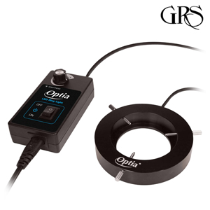With natural spectrum light and adjustable intensity, this LED ring light is easily added to most microscopes using the three adjustable threads.