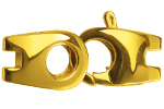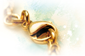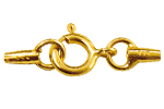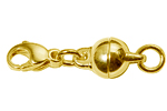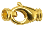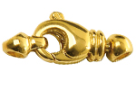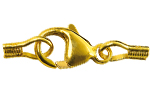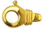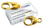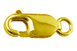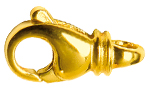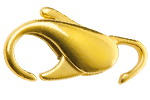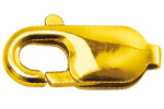 Lobster clasps are secure locking devices consisting of hook, closing part and spring. For opening and closing, the closing part is folded inwards. Lobster clasps are also used as decorative parts.