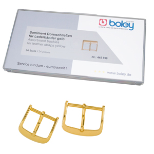 Sets of 24 leather strap buckles in the widths 10 to 24mm.