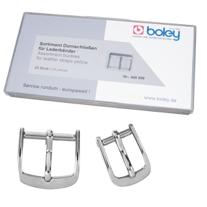 Sets of 24 leather strap buckles in the widths 10 to 24mm.